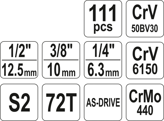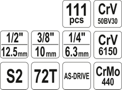 Bộ dụng cụ sửa chữa tổng hợp 1/4", 3/8" & 1/2" 111 chi tiết YATO YT-38831 là một sản phẩm hữu ích và chất lượng cao trong việc sửa chữa và bảo trì. Dưới đây là một số điểm nổi bật về sản phẩm này: