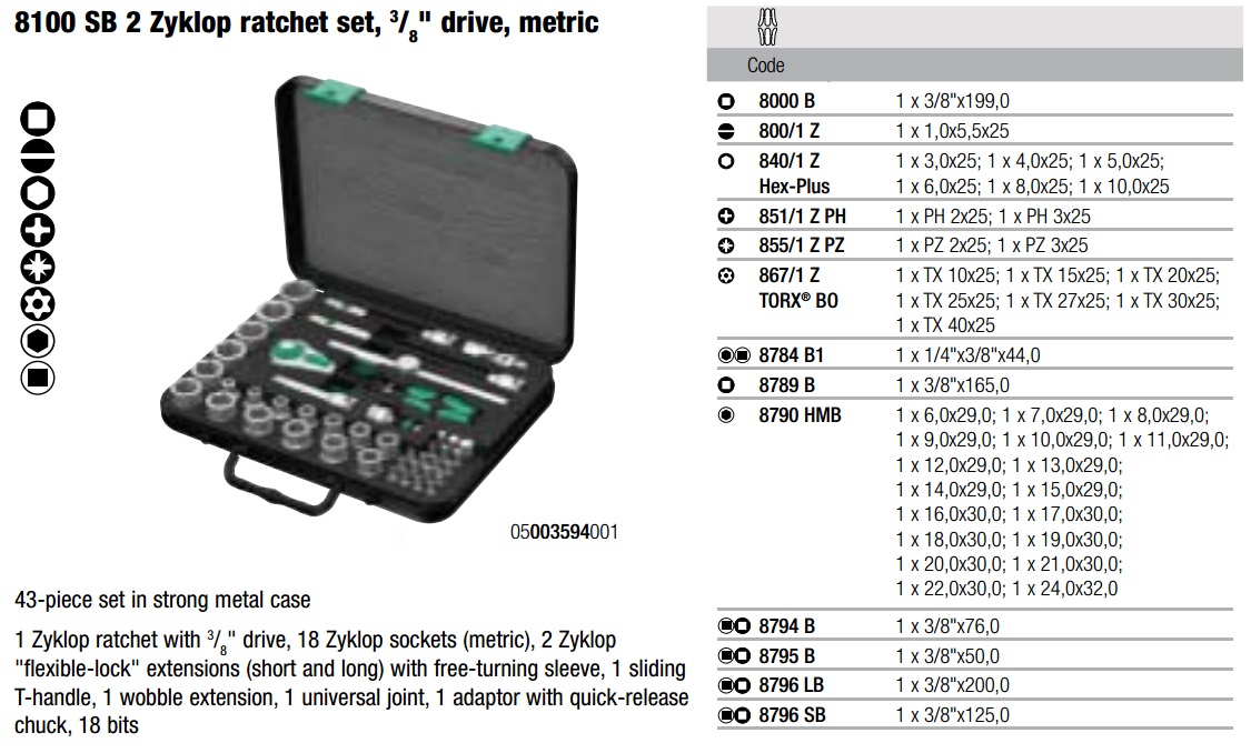 Bộ Đầu Tuýp Wera 3/8 Inch 05003594001 Bao Gồm: