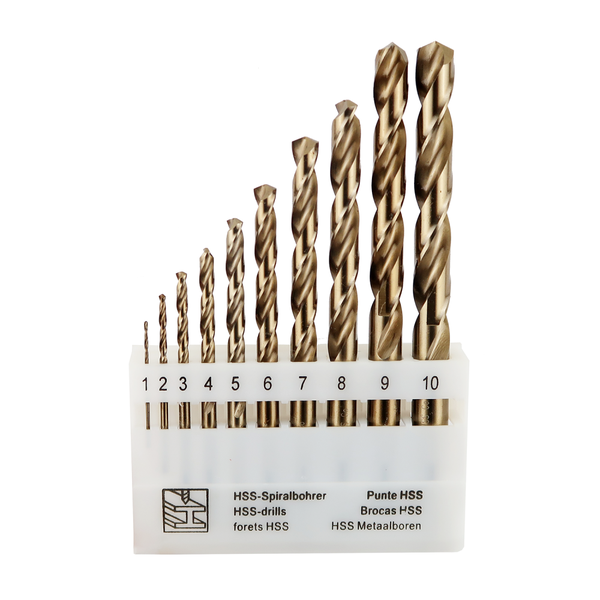 - Bộ mũi khoan gồm: 10 size: 1, 2, 3, 4, 5, 6, 7, 8, 9, 10mm