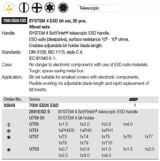Bộ tô vít Wiha có mã số 7000 EB26 ESD (33848) có vẻ như là một lựa chọn tốt cho công việc lắp ráp và sửa chữa trong lĩnh vực điện tử, đặc biệt là khi làm việc với các bộ phận vi mạch và các chi tiết yêu cầu chống từ tính. Dưới đây là một số thông tin chi tiết: