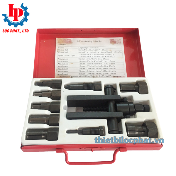 - Gồm 1 cảo chữ H và 7 đầu mở với đường kính mở: 8mm, 10mm, 12mm, 15mm, 17mm, 20mm, 25mm.