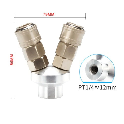 Đầu chia hơi 2 chạc Nhật còn được thiết kế đơn giản và dễ sử dụng. Với cấu trúc gồm 1 đế 2 nhánh và 2 đầu nối nhanh, việc lắp đặt và tháo gỡ trở nên dễ dàng và nhanh chóng. Đầu nối nhanh ren 13mm cung cấp khả năng kết nối chắc chắn và không gây rò rỉ khí nén.