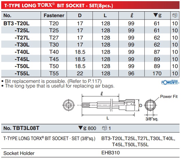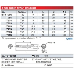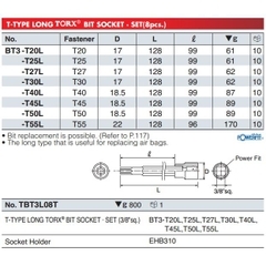 TBT308T: Bộ 8 khẩu đầu sao với các cỡ từ T20 đến T55, giúp bạn linh hoạt trong công việc.