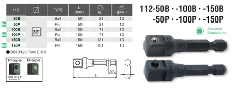- Đầu chuyển bits sang nối khẩu 3/8 inch, Koken 112-50B.