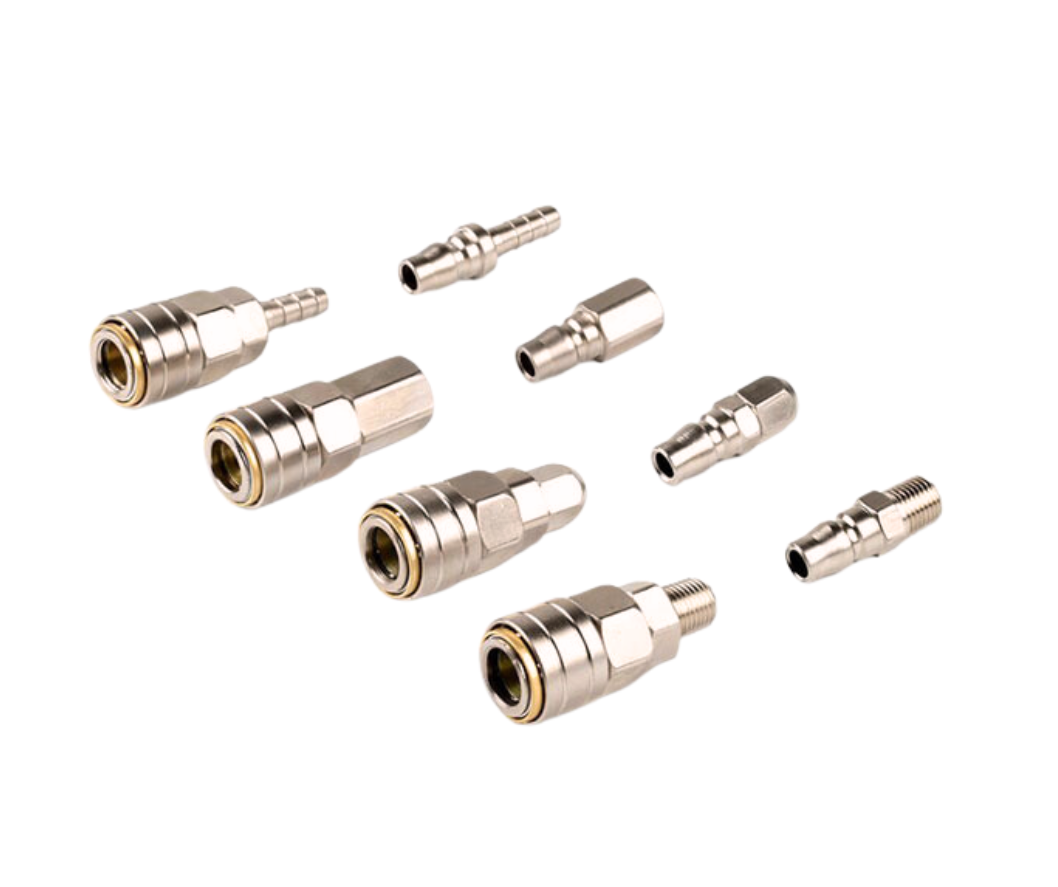 Bộ sản phẩm gồm đầu nối nhanh âm và dương, được thiết kế đặc biệt để sử dụng cho dây hơi nhựa PU có đường kính ngoài 8mm, 10mm và 12mm. Điều này giúp sản phẩm linh hoạt và phù hợp với nhiều ứng dụng khác nhau.