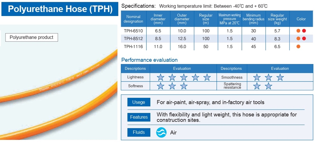 Để tối ưu hóa hiệu suất, bạn có thể tham khảo dòng Polyurethan của Togawa Nhật, với các mã số như TPH-6510 và TPH-8512. Điều này giúp đảm bảo sự tương thích và độ bền khi sử dụng cùng với đầu nối nhanh SH.
