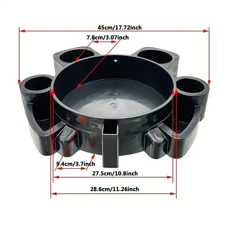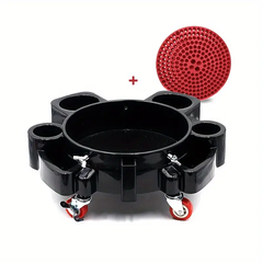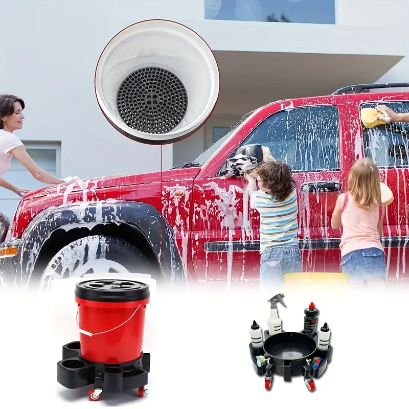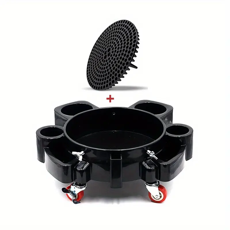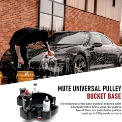 Hỗ Trợ Tối Đa: Sản phẩm tương thích với nhiều loại xô rửa xe có dung tích từ 10-20 lít. Ngoài ra, đế còn được thiết kế với các ngăn chứa để chai dung dịch và dụng cụ vệ sinh, giúp người thợ dễ dàng sắp xếp và sử dụng.