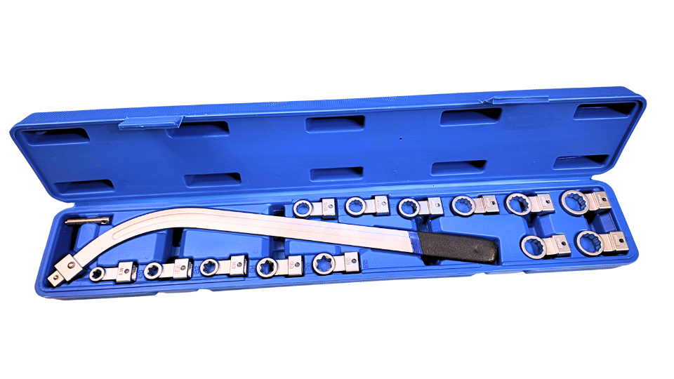 Giới thiệu chi tiết về Dụng cụ tháo lắp bộ căng đai Tổng quan Dụng cụ tháo lắp bộ căng đai là một thiết bị không thể thiếu trong việc bảo dưỡng và sửa chữa ô tô. Được thiết kế đặc biệt để sử dụng trong không gian hẹp và với bộ đầu chuyển 13 cái, công cụ này phù hợp trên hầu hết các dòng xe.