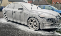 Phun nước rửa: Bắt đầu quá trình rửa xe bằng cách phun nước rửa trên bề mặt xe, đặc biệt là các khu vực bị dính bẩn nhiều nhất như bánh xe, đuôi xe, khe cửa... Bạn cần sử dụng máy bơm rửa cao áp để đẩy nước ra với áp suất cao để loại bỏ vết bẩn và bụi bẩn.