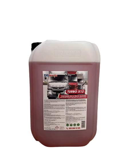 Dung dịch rửa xe không chạm TURBO X12 là một sản phẩm rửa xe tiện lợi và hiệu quả, đặc biệt dành cho xe tải và xe khách. Dưới đây là những điểm nổi bật và tính năng đáng chú ý của dung dịch này: