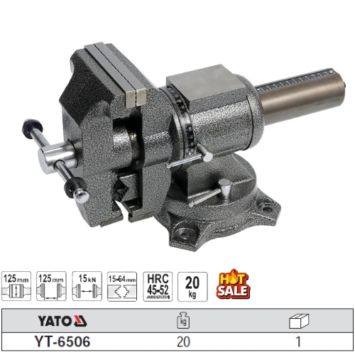 - Thiết kế thông minh: Với chân đế chắc chắn và cần quay được thiết kế vừa tay, Ê tô Yato YT-6506 tạo sự cân bằng và linh hoạt trong quá trình sử dụng.