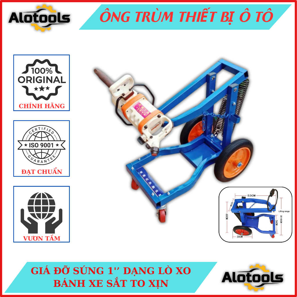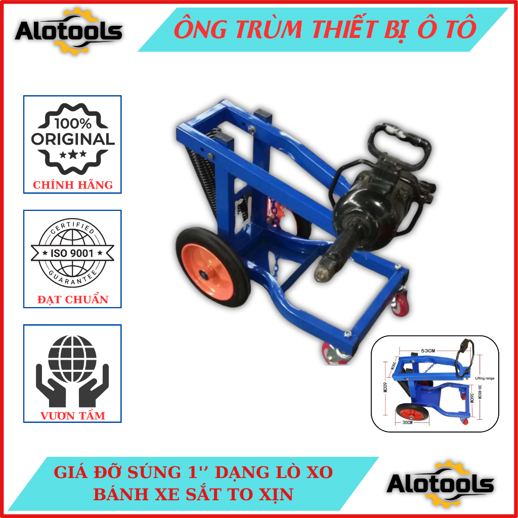 Giá treo đỡ súng bulong 1 inch kiểu lò xo của Alotools được thiết kế để hỗ trợ việc tháo lắp bu-lông lốp trên các xe tải và xe công trình một cách hiệu quả và an toàn. Dưới đây là những đặc điểm nổi bật của sản phẩm: