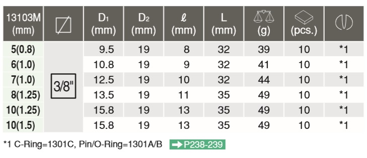 - Các Cỡ Phổ Biến: 13103M-7(1.0), 13103M-8(1.25)