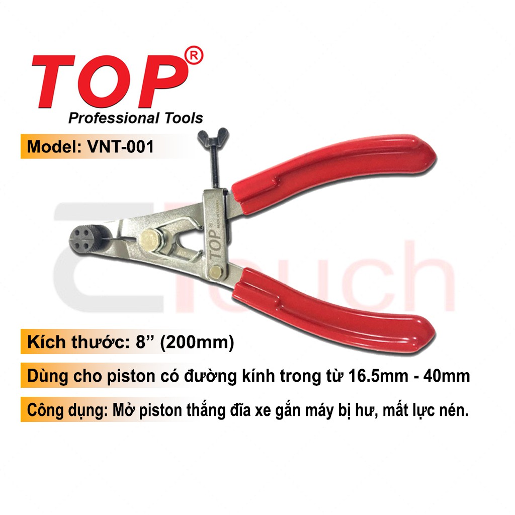 Hãy đảm bảo an toàn và bảo dưỡng hệ thống phanh của bạn bằng cách sở hữu một chiếc kìm mở piston phanh VNT-001 từ hãng TOP ngay hôm nay. Đây chính là công cụ không thể thiếu trong bộ sưu tập dụng cụ sửa chữa xe máy của bạn, mang lại hiệu quả và tiết kiệm trong quá trình bảo trì và sửa chữa hệ thống phanh.