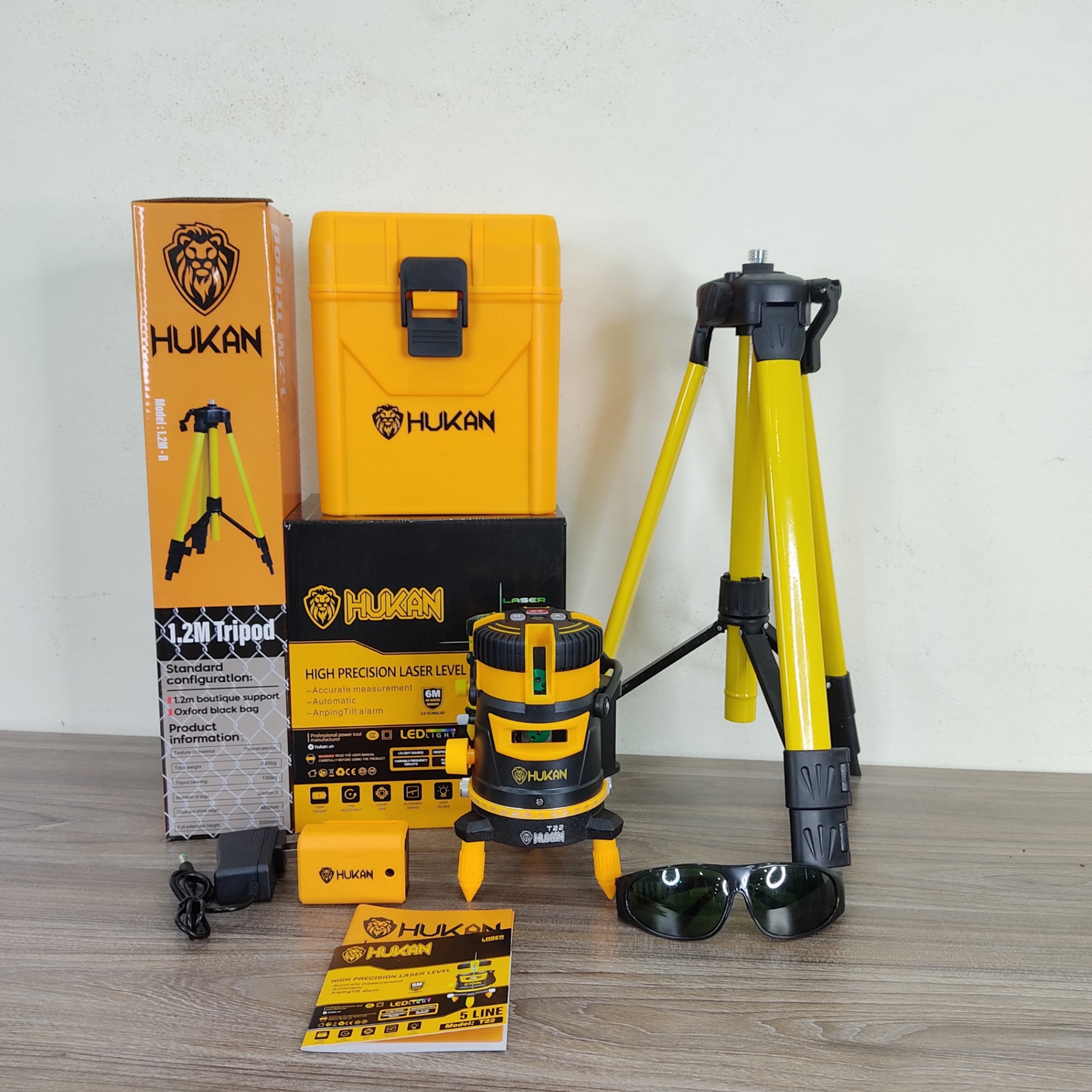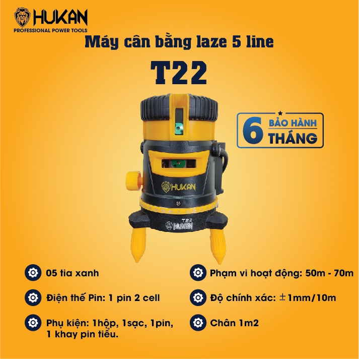 Máy cân bằng laze HUKAN HK-T22 với 5 tia xanh là một công cụ hữu ích trong các công việc thi công và xây dựng. Dưới đây là các thông tin chi tiết về sản phẩm này: