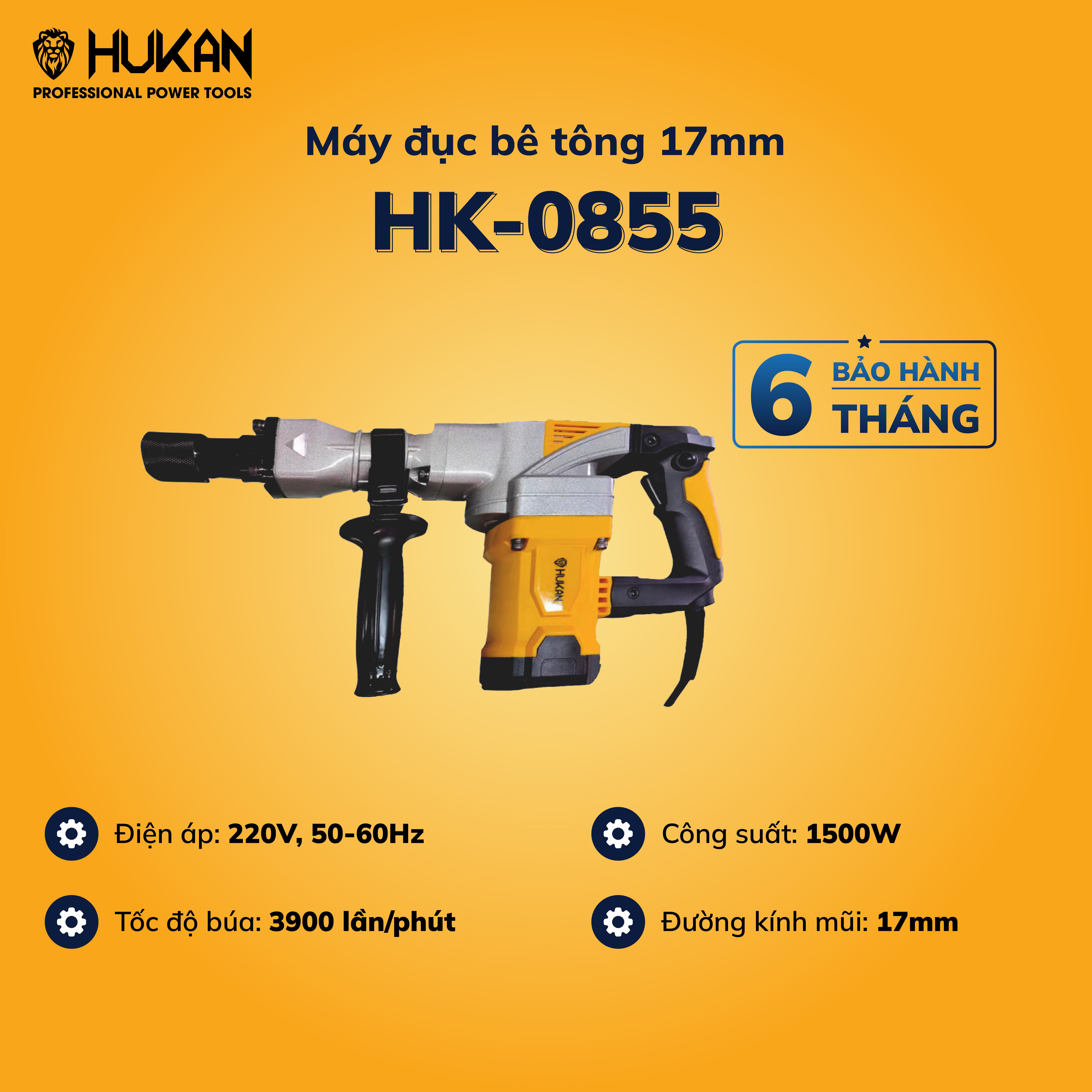 - Công suất cực lớn: Với công suất lên tới 1500W, máy đục HK-0855 cung cấp đủ lực và năng lượng để giải quyết những tấm bê tông cứng đầu và các công việc đục nặng.