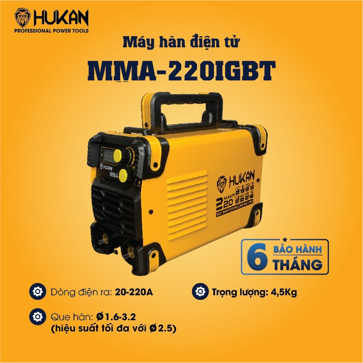 Máy hàn điện tử MMA-220IGBT (Mã sản phẩm: MMA-220IGBT) là một trong những công cụ hàn hiện đại và tiện lợi dành cho các thợ hàn, kỹ sư và những người làm công việc sửa chữa kim loại. Với khả năng điều chỉnh dòng điện ra từ 20A đến 220A và sử dụng các que hàn có đường kính từ 1.6mm đến 3.2mm, máy hàn này sẽ giúp bạn thực hiện các công việc hàn đa dạng một cách dễ dàng và chính xác.