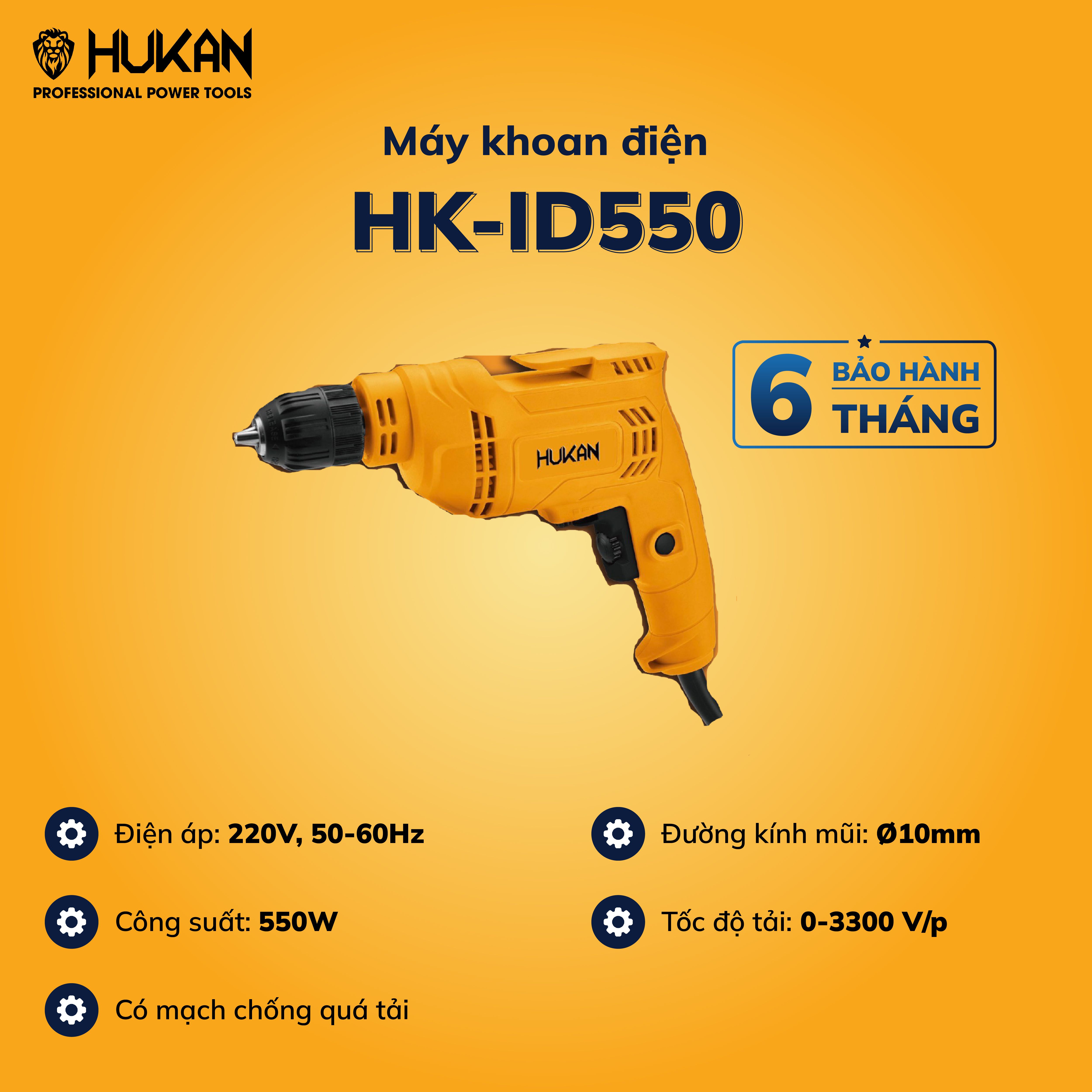 Máy khoan điện Hukan Mã sản phẩm: HK-ID550 là một sản phẩm máy khoan điện chất lượng với các tính năng và ưu điểm sau: