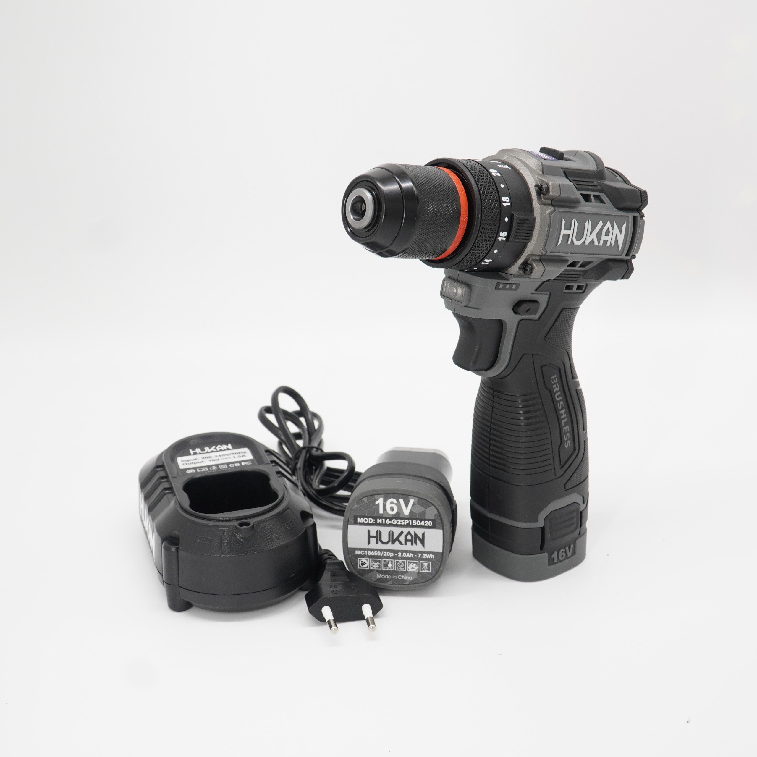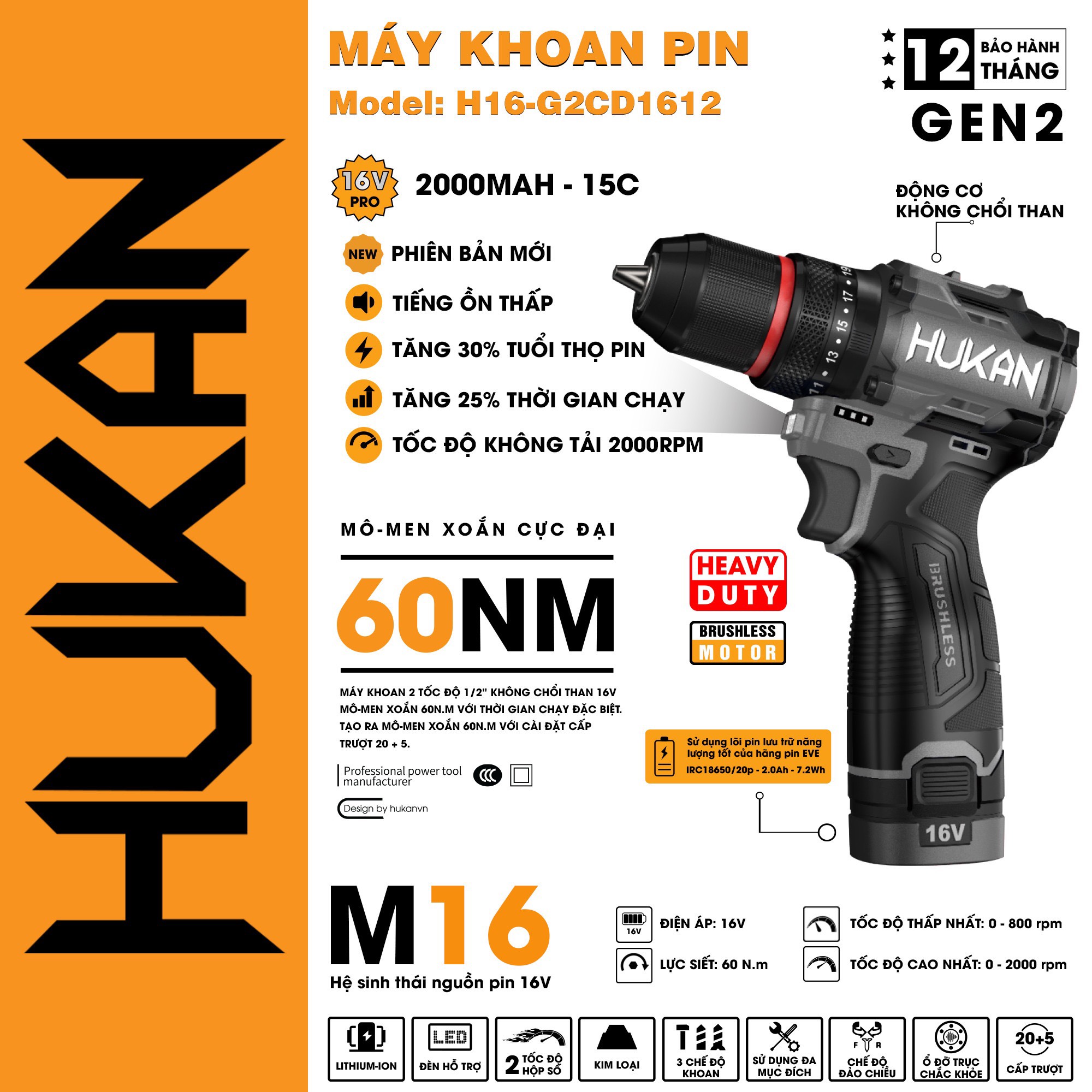 Máy khoan pin 10MM H16-G2CD1612 là mẫu mới của Hukan trong hệ Gen 2, với màu xám xi măng hiện đại. Thiết kế gọn nhẹ, dễ mang theo, nhưng lại sở hữu sức mạnh vượt trội nhờ động cơ không chổi than và pin 16V thế hệ mới.