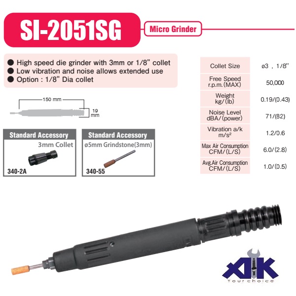 Đa dạng ứng dụng: Thiết kế với kích thước lỗ cắm 3mm (1/8 inch), máy mài này chủ yếu sử dụng cho các công việc mài như mài khuôn, sửa khuôn, và các công việc mài đòi hỏi độ chính xác cao.