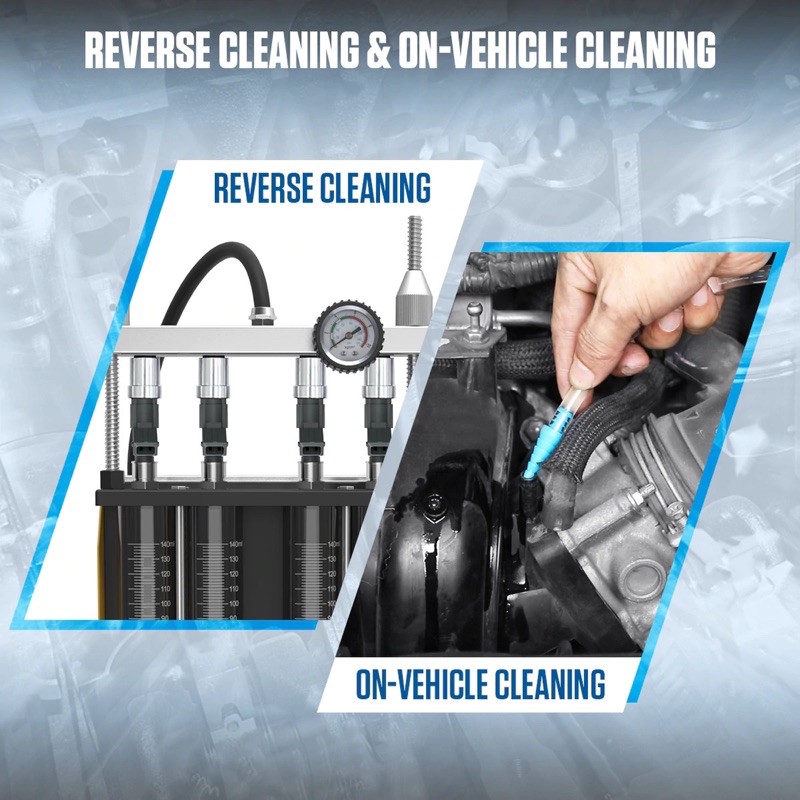 Làm sạch và thử nghiệm kim phun xăng: Thiết bị này có khả năng làm sạch và kiểm tra hiệu suất hoạt động của kim phun xăng trên cả xe ô tô và xe máy. Ngoài ra, nó cũng có thể làm sạch kim phun nhiên liệu diesel, mặc dù không hỗ trợ trong việc kiểm tra nhiên liệu diesel.
