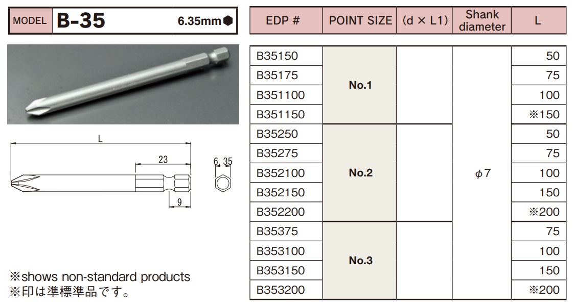 - Sử dụng chất liệu chắc chắn, Mũi Vặn Vít B-35 đảm bảo độ bền và ổn định trong suốt quá trình sử dụng dài hạn.