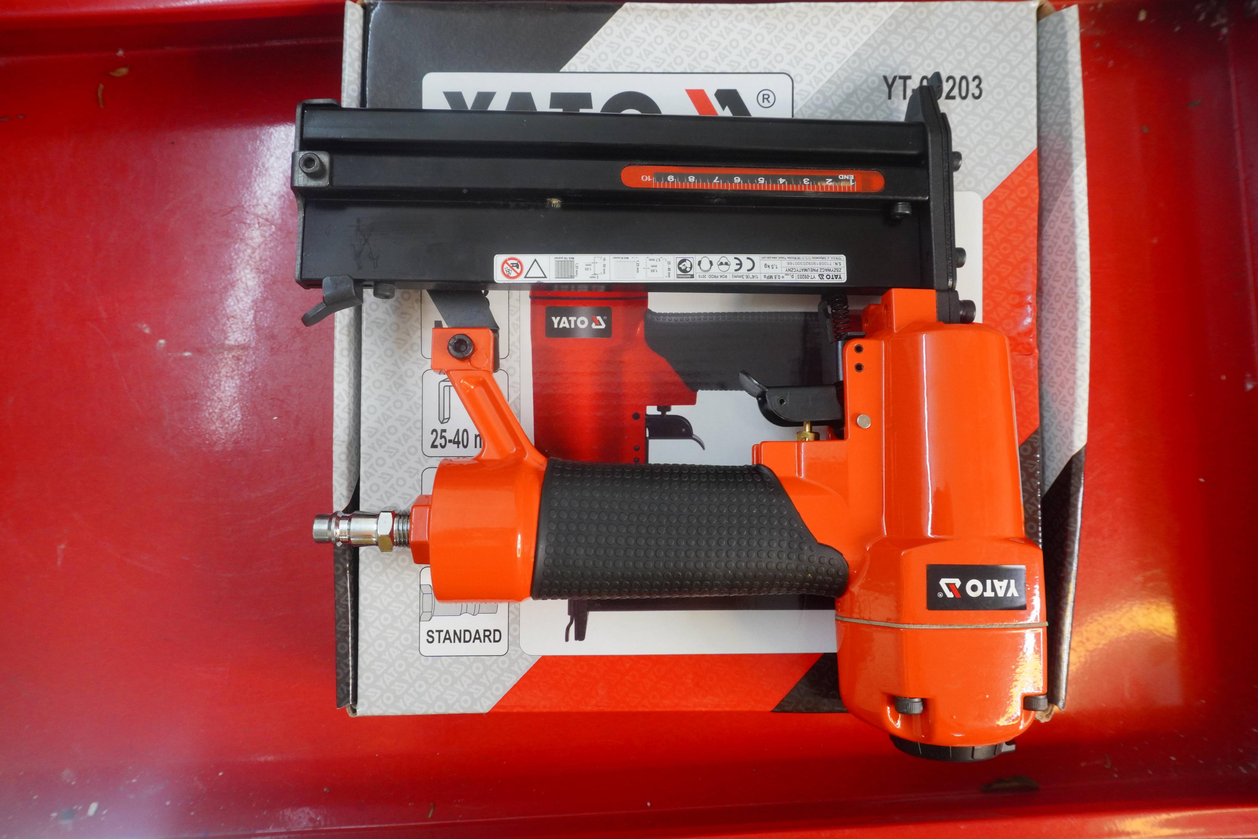 Súng bắn ghim bằng khí nén YATO YT-09203 là một sản phẩm được phân phối bởi máy móc Minh Trí. Đây là một loại súng bắn ghim chữ U và đinh chữ T sử dụng khí nén. Súng này có khả năng bắn đinh với độ dài từ 25 đến 40 mm và đinh dài từ 10 đến 50 mm. Đầu vào khí của súng là 1/4", và thân súng được làm bằng nhôm đúc.
