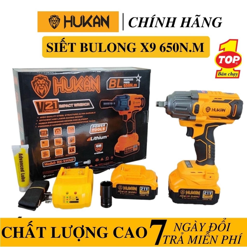 Máy Siết Bulong HUKAN X9 Không Chổi Than Lực Siết 650N.m. Đây là một trong những công cụ không thể thiếu đối với các ngành công nghiệp, ô tô, nồi xe tay ga và nhiều ứng dụng khác.
