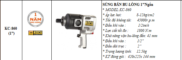 Tên sản phẩm: Súng bu lông khí nén Kocu KC-860