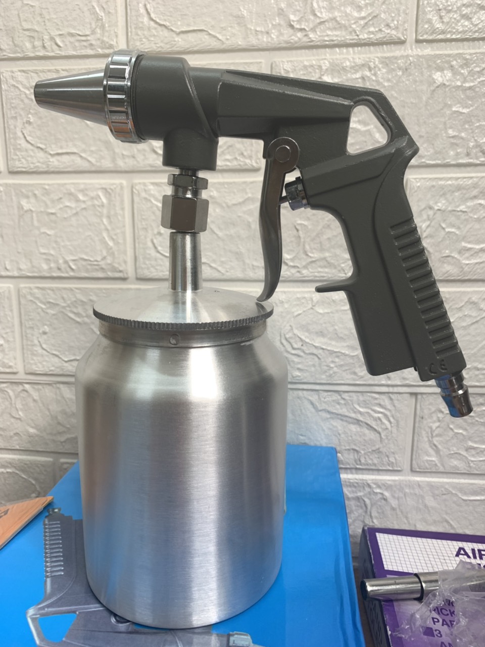 Bình đựng cát dung tích 1 lít: Súng phun cát khô cầm tay đi kèm với một bình chứa cát có dung tích 1 lít. Kích thước này phù hợp để làm sạch các chi tiết máy nhỏ và vừa, và đồng thời không gây cản trở trong quá trình sử dụng.