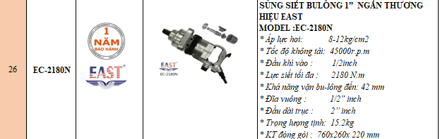Súng Siết Bu-lông 1" Dài - Thương Hiệu EAST, Model: EC-2180N