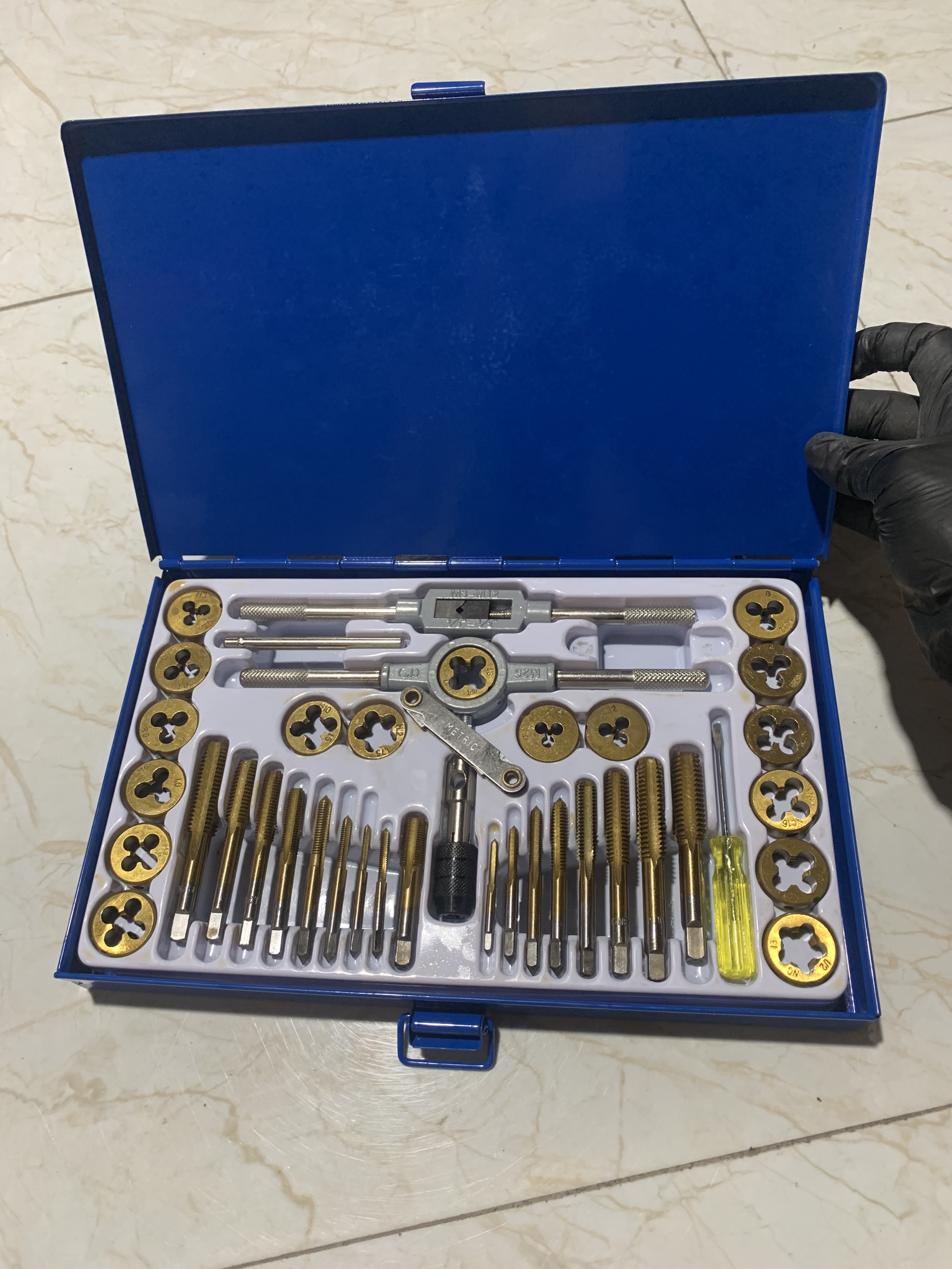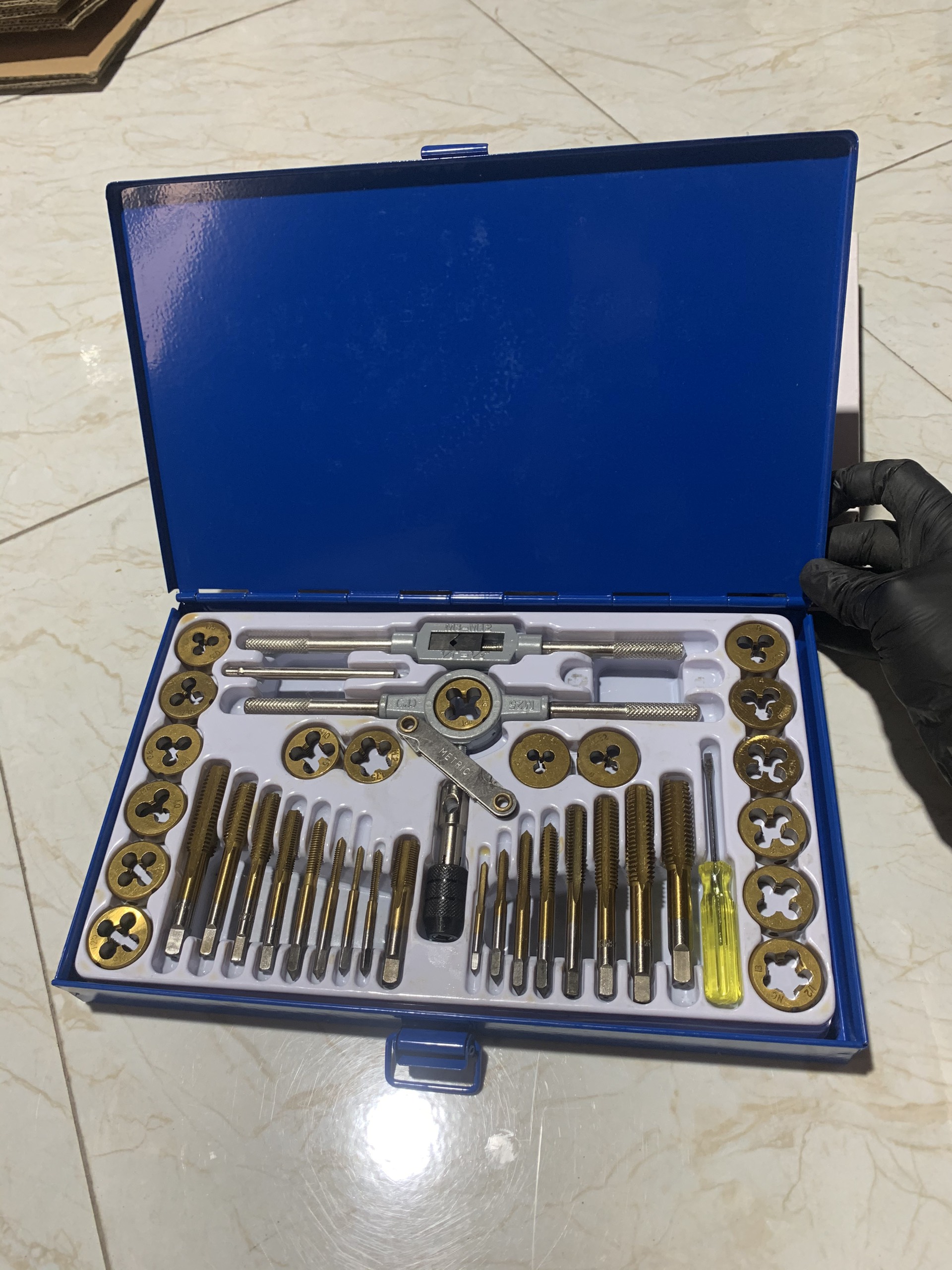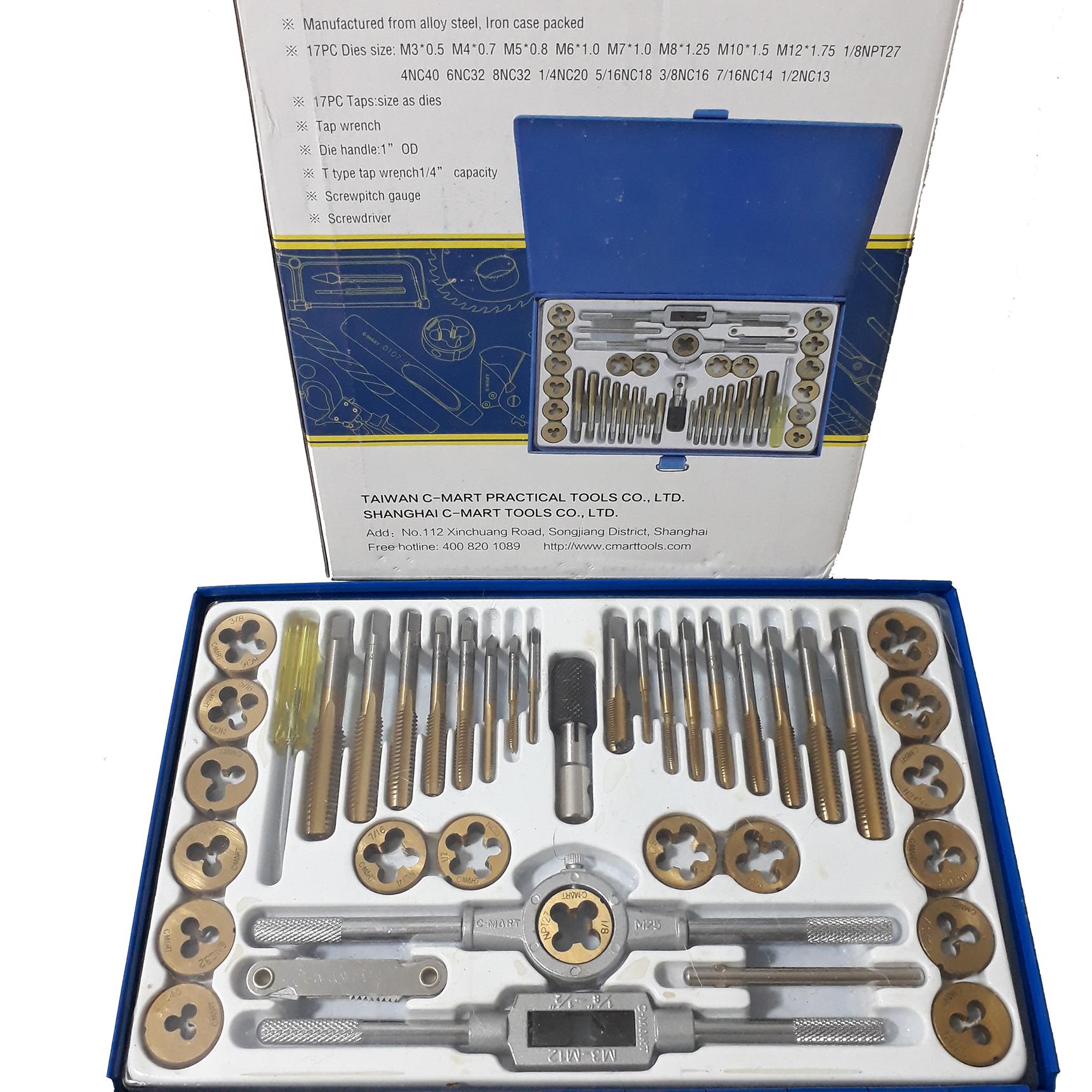 Sản phẩm bạn đề cập là bộ Taro ren trong, ren ngoài 40 chi tiết C-Mart A1012 nhập khẩu từ Taiwan. Đây là một bộ dụng cụ ren metric và inch, được phân phối bởi công ty Minh Trí.