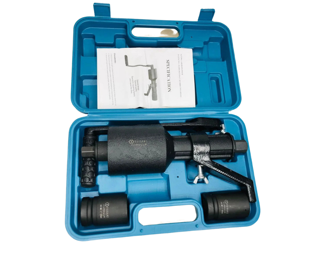 Bộ dụng cụ đa năng này không sử dụng điện mà vặn bằng tay chuyên dụng, đơn giản và an toàn mà không cần phải mất sức. Bộ dụng cụ này được thiết kế với 2 đầu khẩu loại 32mm và 33mm phù hợp cho các dòng xe tải, bán tải.