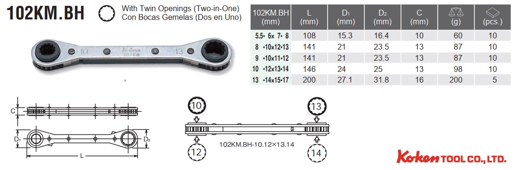 Thông tin sản phẩm: Tay vặn Koken 2 đầu tròng tự động 102KM