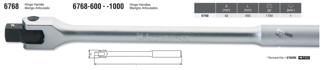 Tay gập Koken đầu 3/4 inch, Koken 6768-450, Koken 6768-600: