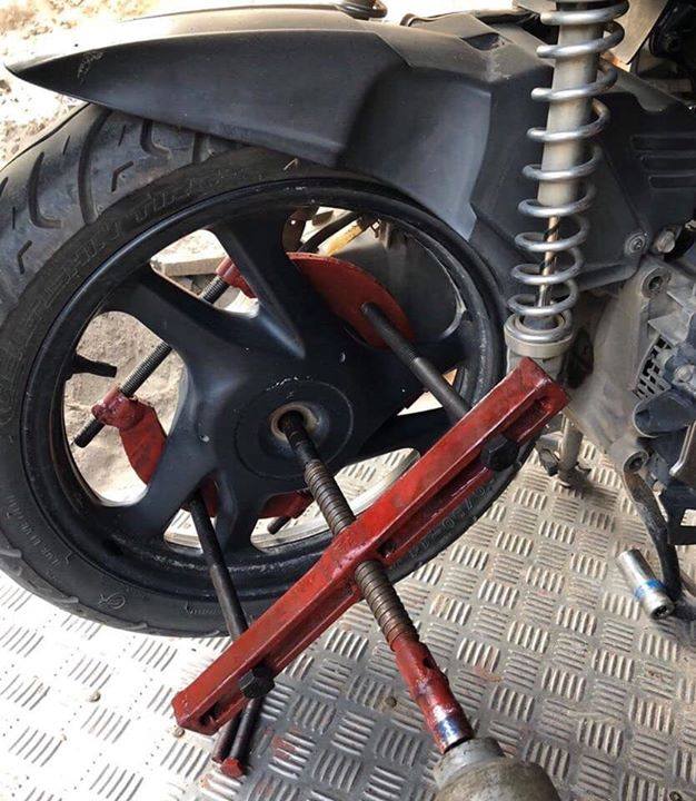 Hướng dẫn sử dụng vam tháo càng sau xe tay ga như sau: