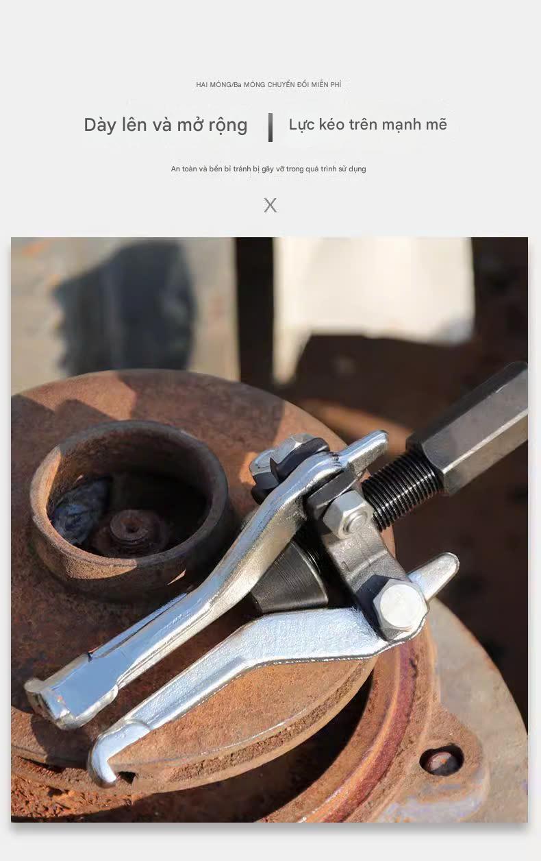 Thiết Kế Thông Minh, Dễ Dàng Thao Tác: Cấu trúc ba móng vuốt được gia cố chắc chắn, giúp phân bố lực đồng đều khi kéo, đảm bảo an toàn và không gây hư hại cho các chi tiết máy. Cơ chế búa trượt mạnh mẽ hỗ trợ tháo lắp nhanh chóng và hiệu quả, tiết kiệm thời gian và công sức cho người thợ.